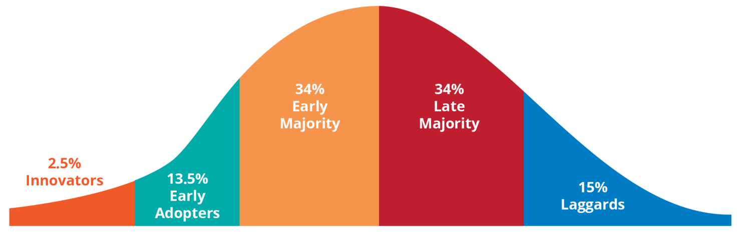 Critical to getting new innovations adopted is to first convince Innovators and Early Adopters to use it. Only then will the rest of the people follow.